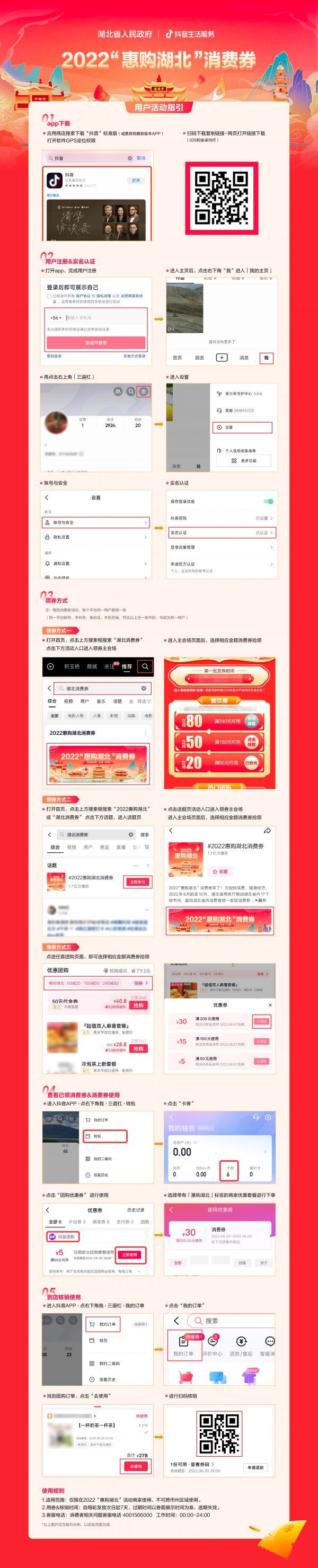 “抖音生活服务将结合平台资源与优势,积极配合湖北省人民政府和湖北省商务厅共同推进此次消费券发放活动和湖北区域形象宣传,打造2022‘惠购湖北’促消费浪潮。”据介绍,此次活动周期为2022年6月至10月,首轮消费券将分2批发放,第一批投放时间为6月13日20:00;第二批投放时间为6月23日20:00。