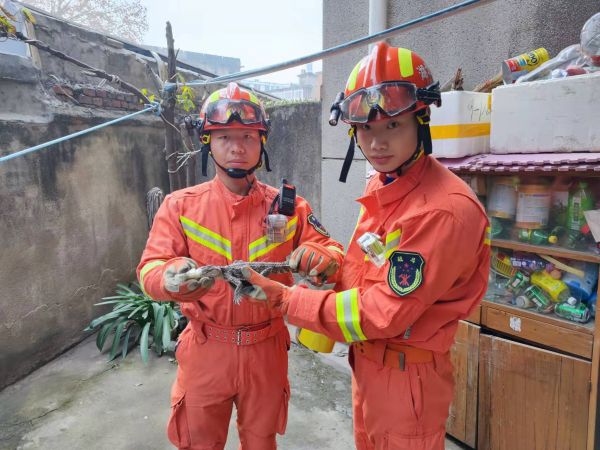 窜出鳄鱼的居民家位于一楼,黄石市消防救援支队下陆大队幸福消防站消防员赶到现场时,鳄鱼正被盖在面盆里。两名消防员做好防护后,一人轻轻揭开面盆,另一人立即用夹子夹住了鳄鱼的嘴巴。这条鳄鱼长约半米,瞪着眼睛,头部和腹部呈现暗黄色,背上有突出的骨刺,身上布满黑色的花纹,尾巴不时摇摆。