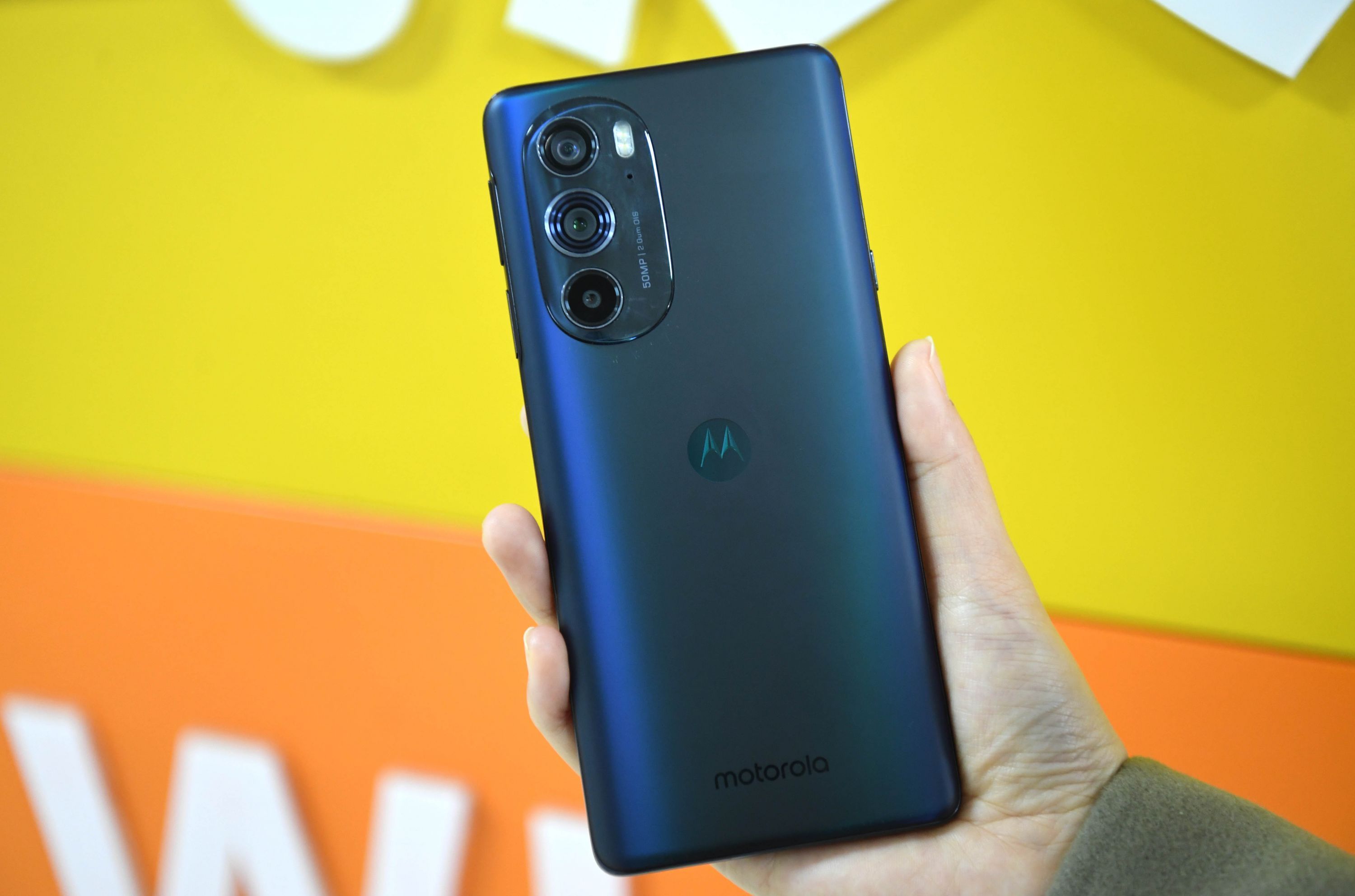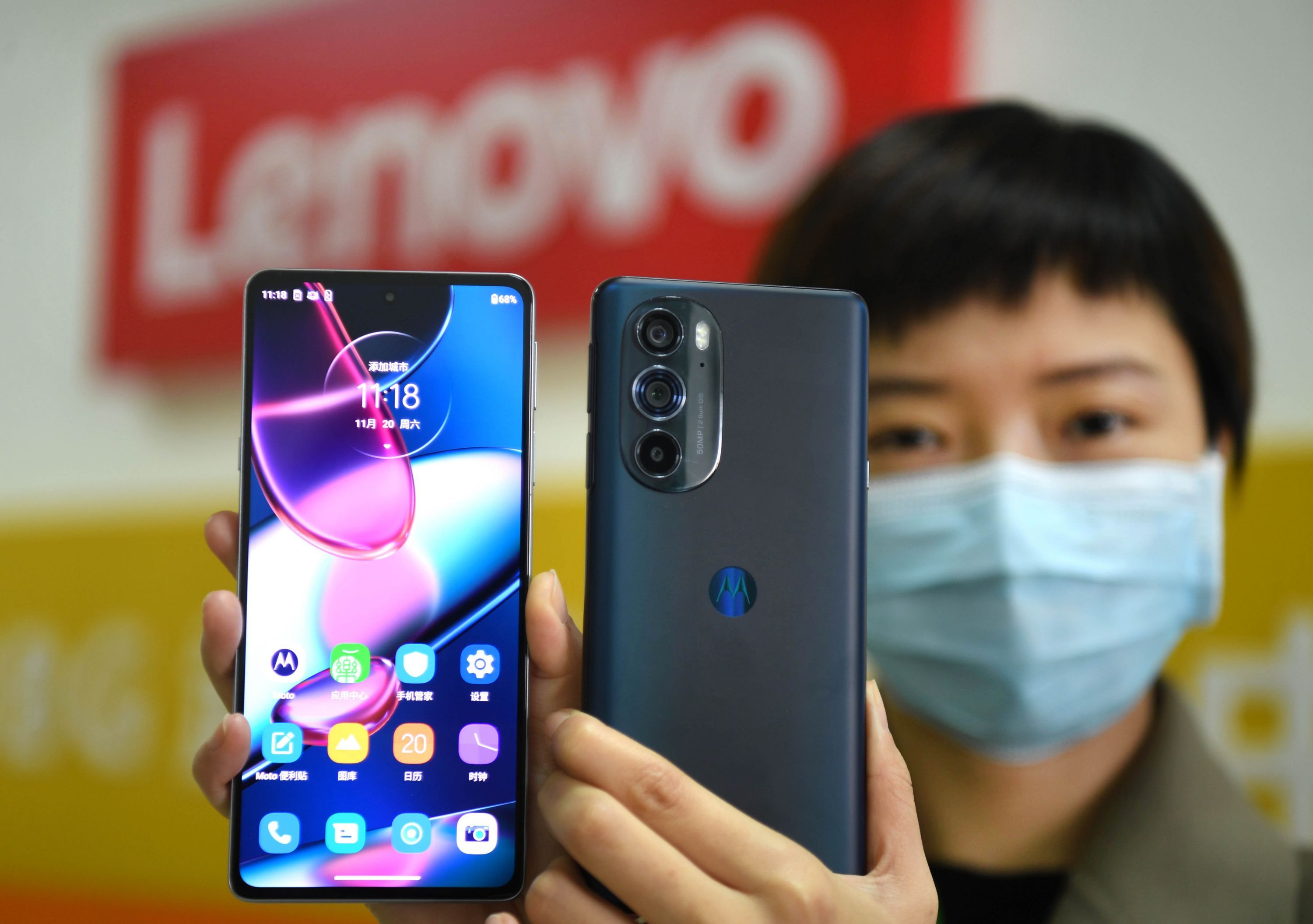 联想武汉产业基地员工展示联想旗下的moto edge X30手机。长江日报记者高勇摄