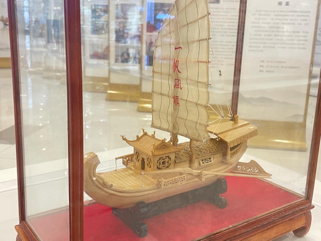 此次展览共展出武汉木雕船模国家级代表性传承人龙从发、龙勇父子的三组作品:同舟共济、寓意吉祥的“龙凤呈祥”;武汉特色显著的“黄鹤楼”;以及极富地方特色的“湖南湘江客船”“西陵峡客船”。