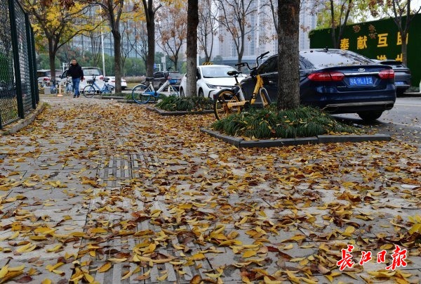 12月16日,武汉天气阴沉,又一轮降温即将来临。街头轻风时起,飘落无数黄叶。长江日报记者李永刚 摄