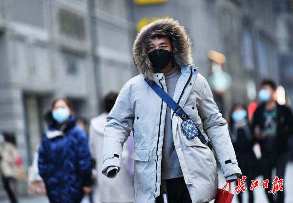 12月16日,在江汉路上,人们在凉风中逛街。 长江日报记者喻志勇 摄