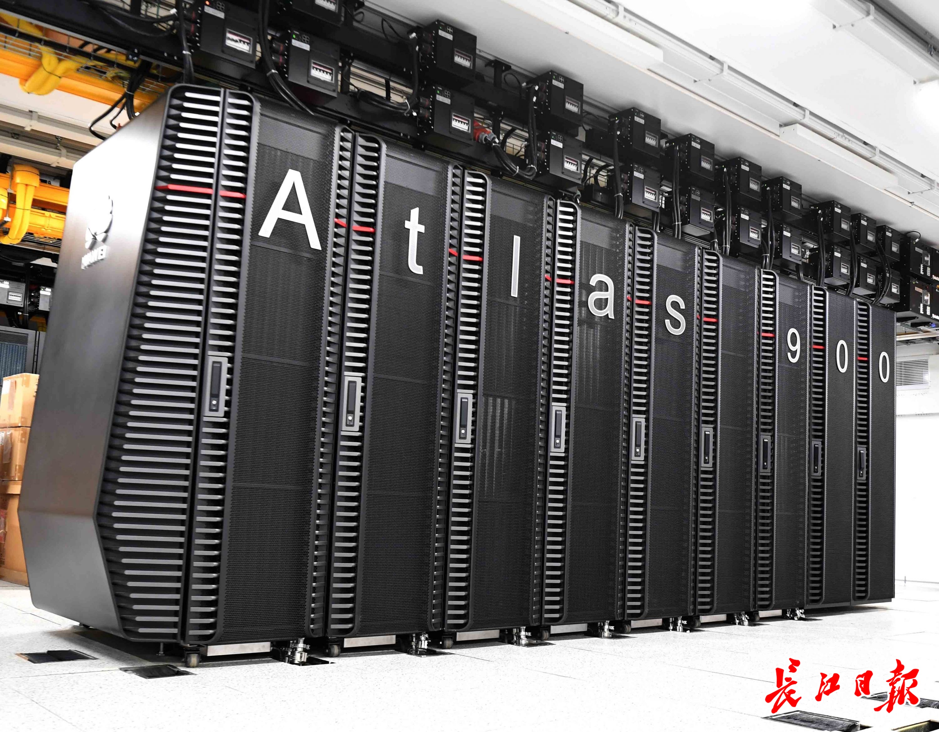 武汉人工智能计算中心数据机房的华为AI集群Atlas900排成一列。长江日报记者高勇 摄