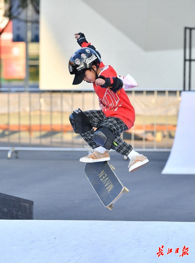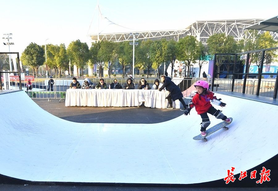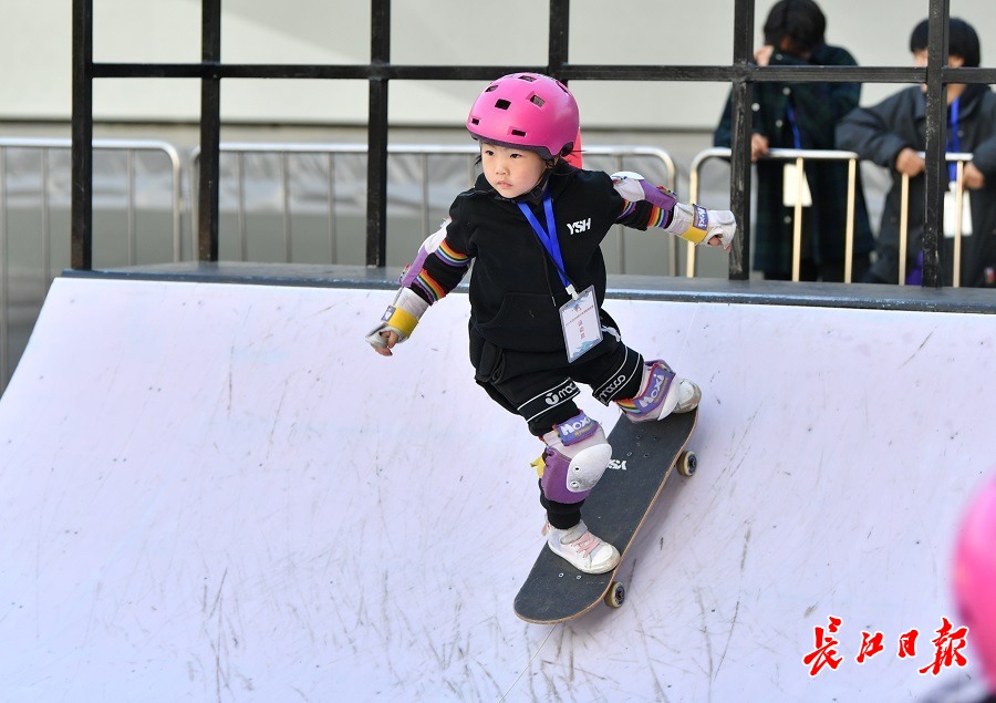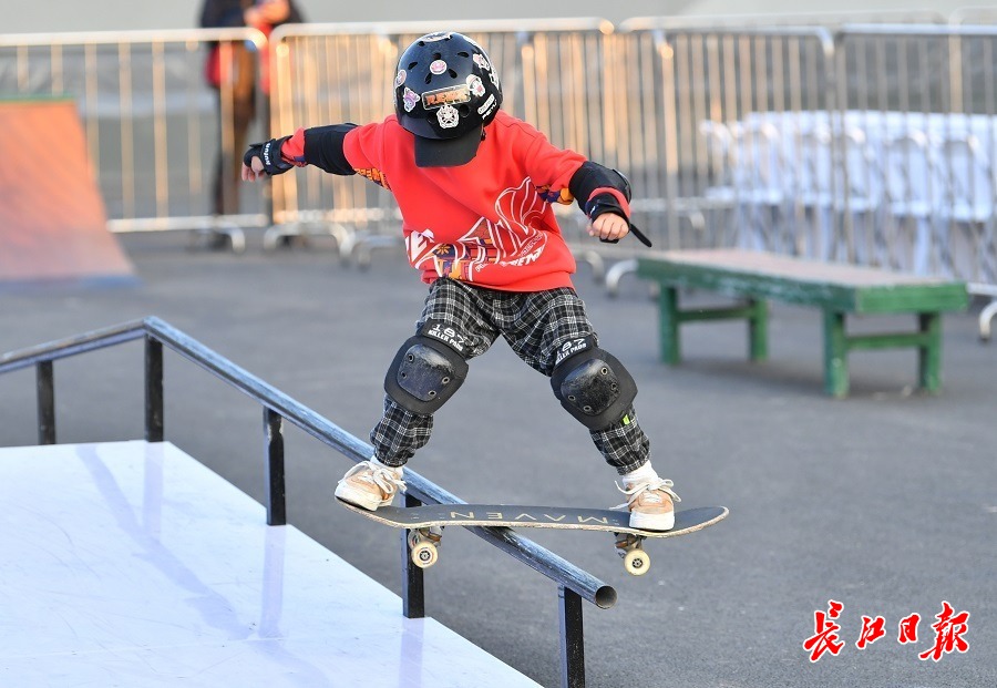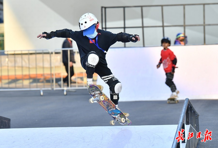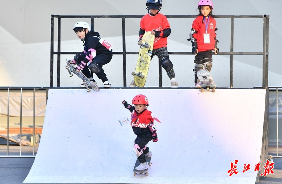长江日报大武汉客户端12月19日讯 12月19日,2021年湖北省青少年滑板锦标赛在武汉体育中心举行,这也是第八届全国大众冰雪季系列赛事之一。来自省内宜昌、襄阳及武汉等地的近百名选手在U池滑板和街式滑板比赛中一展技艺。其中年龄最大的18岁,最小的仅4岁。(长江日报记者喻志勇 摄影报道)