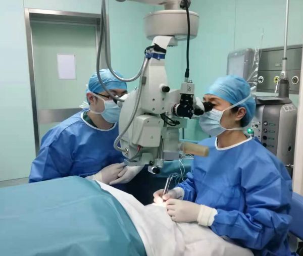 经过眼科检查,老人的晶状体浑浊,右眼视力为0.1,左眼视力仅剩光感,医生诊断其为双眼老年性白内障,左眼角膜云翳、左眼外斜视。因为老人白内障较为严重,晶状体核度硬,加上老人年龄大、治疗晚,所以给手术也带来了难度。经过充分的术前准备,眼科副主任医师赵芳决定为老人先实施右眼白内障手术,术中赵主任小心翼翼地在其眼角膜边缘设计一个微小切口,用一根有超声震动功能的乳化针伸入眼球内,高频率的震荡将发硬的晶体震碎,并将其吸出体外,之后又重新植入了一个新的人工晶体,不到20分钟就为老人完成了“复明”手术。术后第一天,当眼科医生周媛媛为老人打开纱布,老人兴奋地说:“看见了,我终于能看见了!”