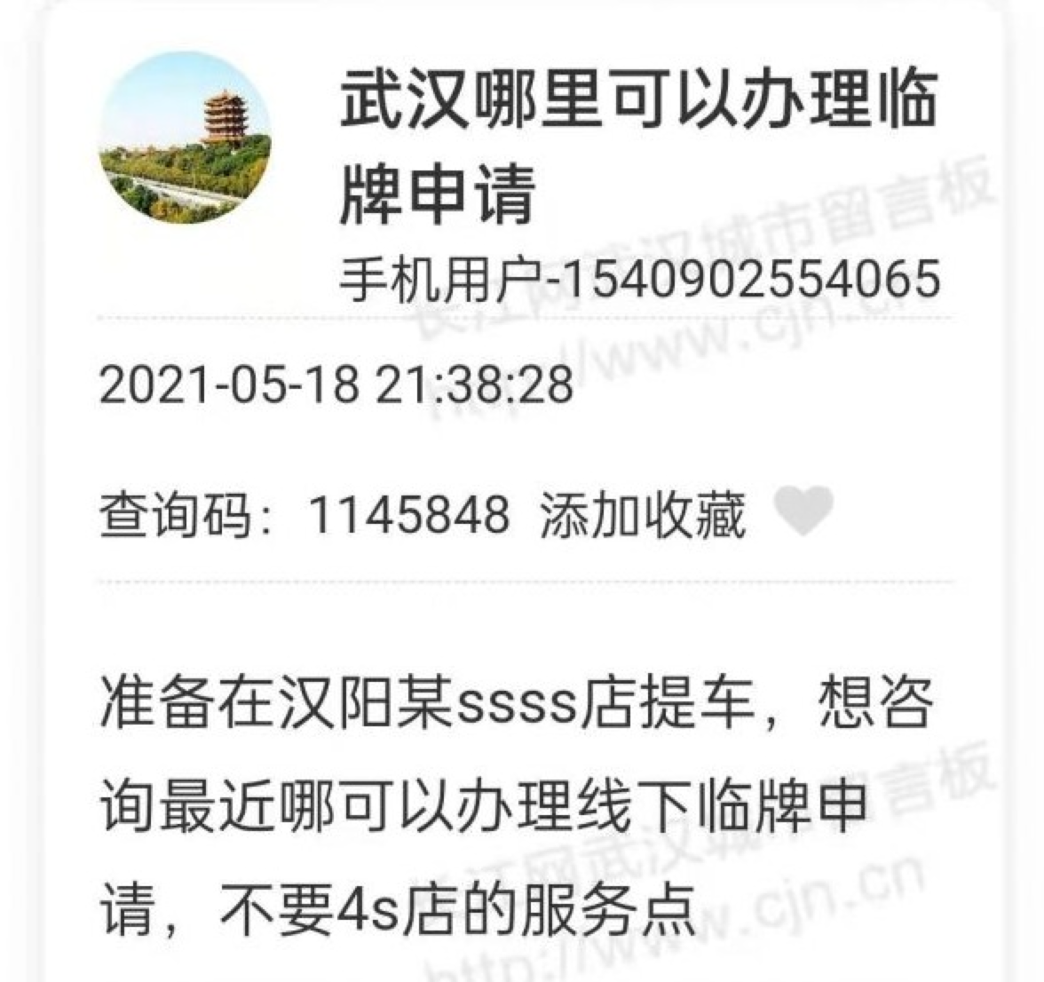 市民:准备在汉阳某4S店提车,想咨询最近哪里可以办理线下临牌申请?