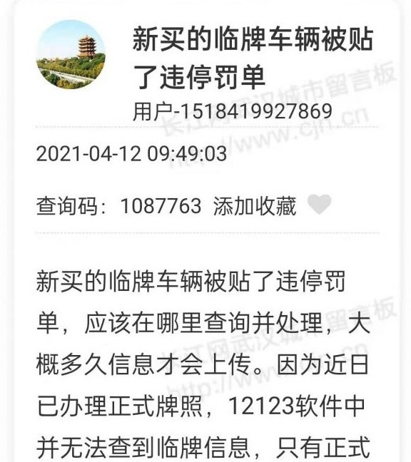市民:新买的临牌车辆在洪山区被贴了违停罚单,12123APP上无法查到临牌信息,应该在哪里查询信息并处理?