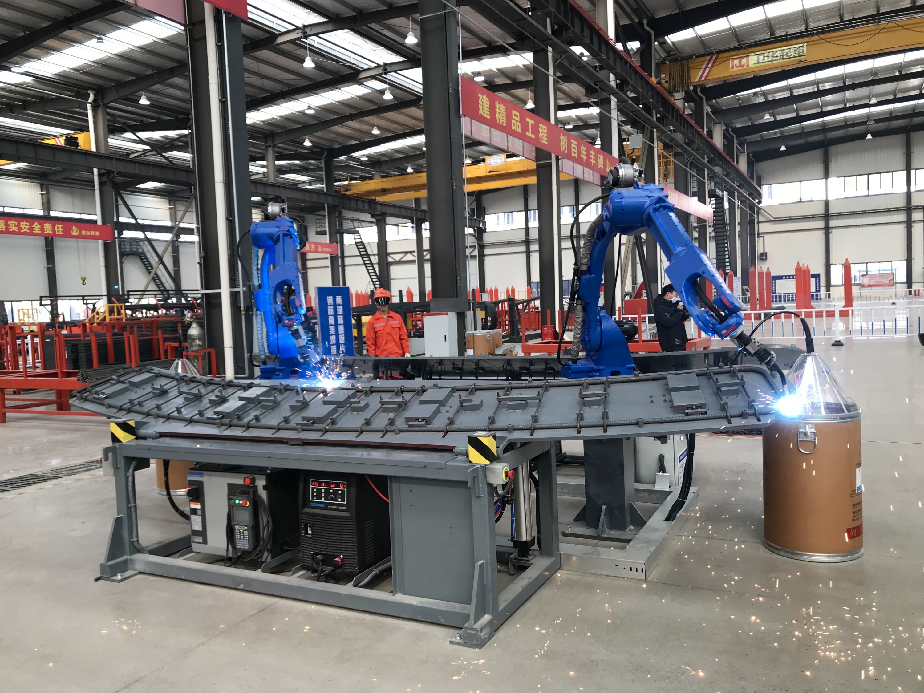 “预制构件的钢筋骨架采用人工焊接,精度控制不够,且效率较低。”现场工作人员告诉记者,该基地通过设计专用工作台,配合焊接机器人,可显著提高焊接工效和质量,规避人工操作的安全风险。