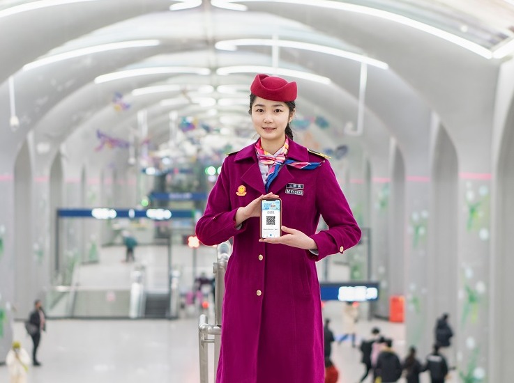 武汉地铁工作人员展示武汉地铁“Metro新时代”软件。通讯员产启斗 摄