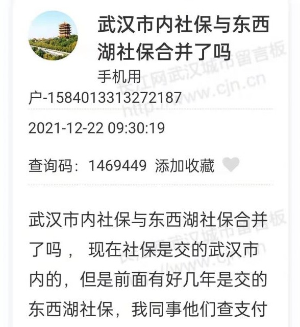 市民:现在社保是交的武汉市内的,但前面有好几年是交的东西湖社保,武汉市内社保与东西湖社保合并了吗?
