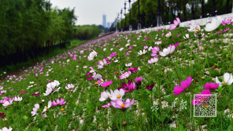 武汉街头,波斯菊盛开 长江日报记者李永刚 摄