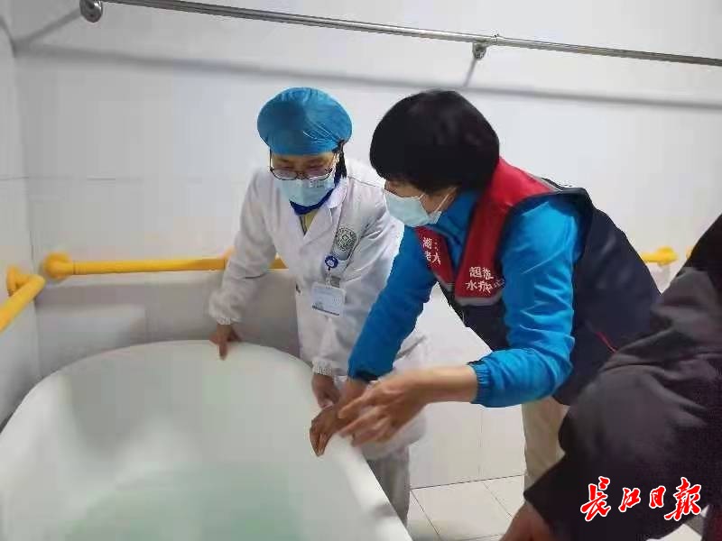 长江日报大武汉客户端12月29日讯(记者刘越 通讯员程春亭 阮诗超)12月26日至28日,武汉星光耀志愿者助浴师们带着湖北缓老院大学捐赠的巨晴摩雅泡澡机,走进孝感福利康复中心和一医院宁安中心,服务老人们脱衣泡澡、搓背、剪指甲。