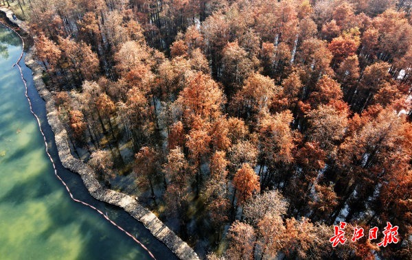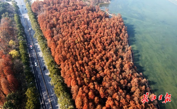 长江日报大武汉客户端12月23日讯 12月22日,武汉天气晴朗,在冬日暖阳的映照下,南湖大道百米长的湖岸线边,层层叠叠似红霞般的杉树立于湖畔。放眼湖中杉林,树与湖交相辉映,浓淡相宜,如油画般动人美丽。让我们一起来欣赏这油画般的杉树林吧!(长江日报记者李子云 摄影报道)