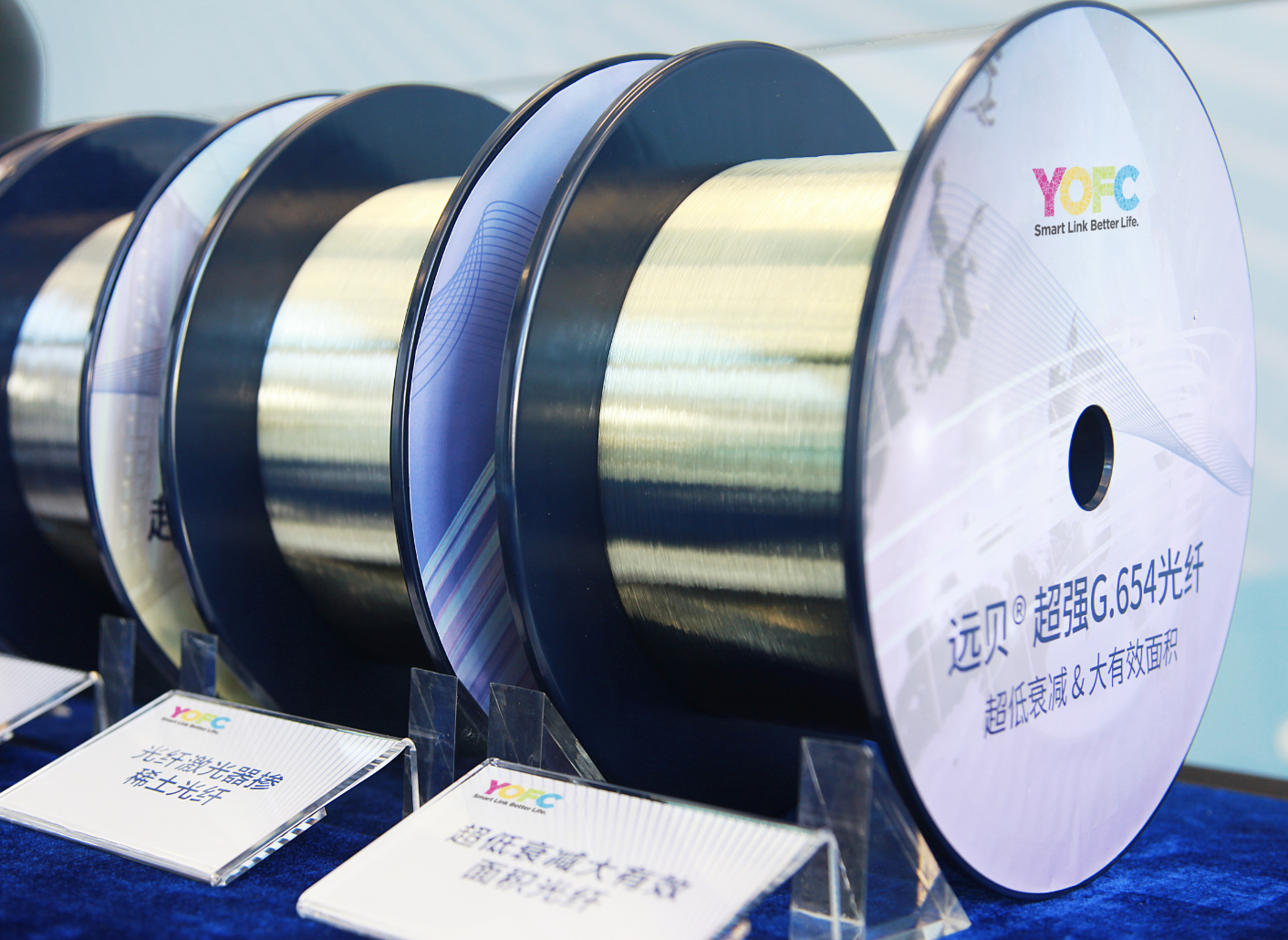 在长飞公司展厅,一款超强超低衰减G.654.E光纤被陈列。这是长飞公司实现核心技术从跟跑、并跑到部分领跑蜕变的例证。