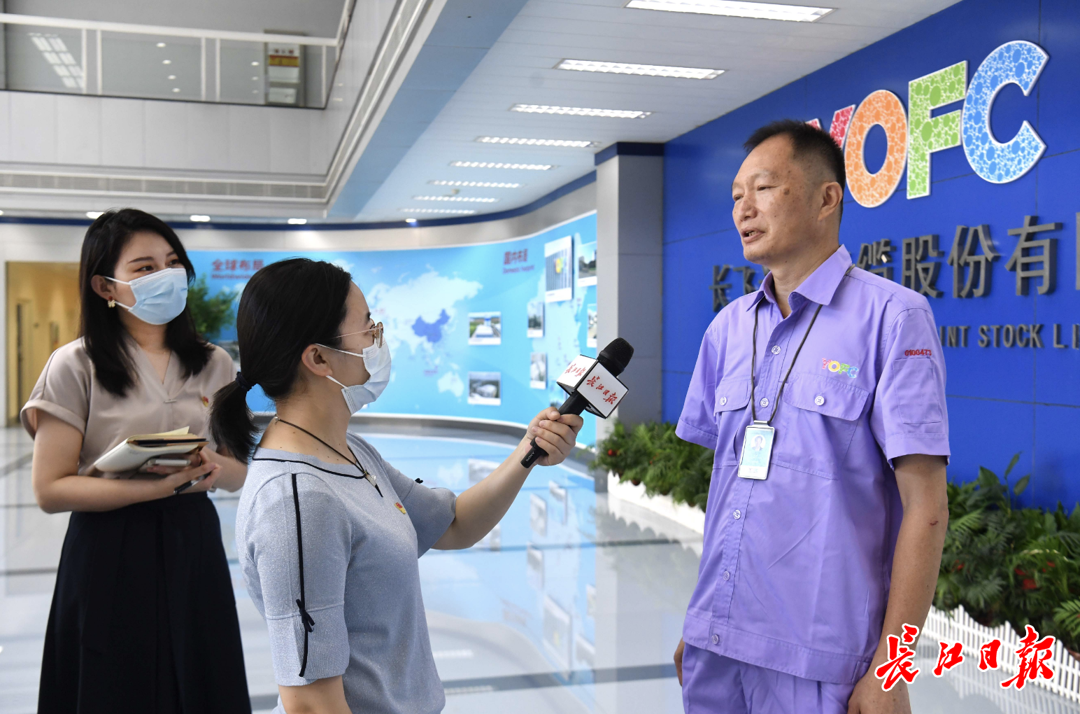 长飞公司电气高级工程师钟升接受长江日报记者采访。 记者高勇 摄
