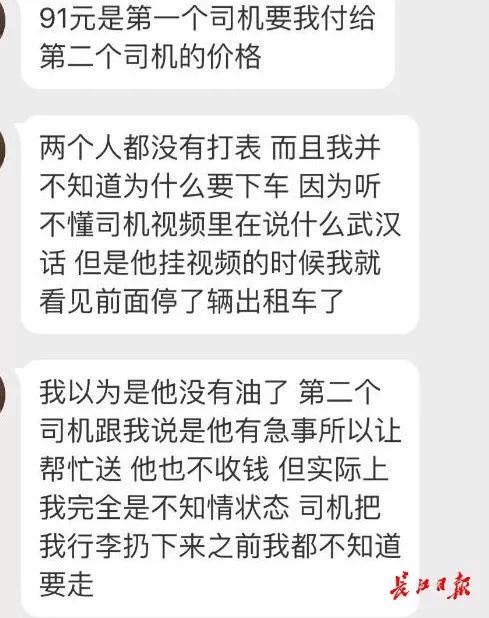 余同学说,第二辆出租车司机给出的解释是:“刚才那位司机家里有急事,让我帮忙送,直接转91元车费就行。”