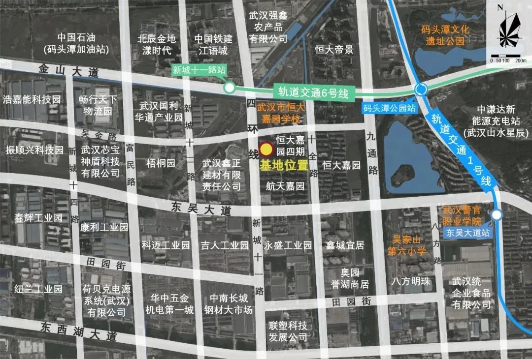 项目地块位于东西湖区新城十一路(四环线)与吴金路交汇处东南侧,东邻武汉市恒大嘉园四期,南邻航天嘉园二期,北侧隔路为武汉市恒大嘉园学校(九年一贯制公办学校),占地面积约7860平方米。附近有轨道交通1号线、6号线,其中距离轨道交通6号线新城十一路站600米左右。基地现状为闲置用地。