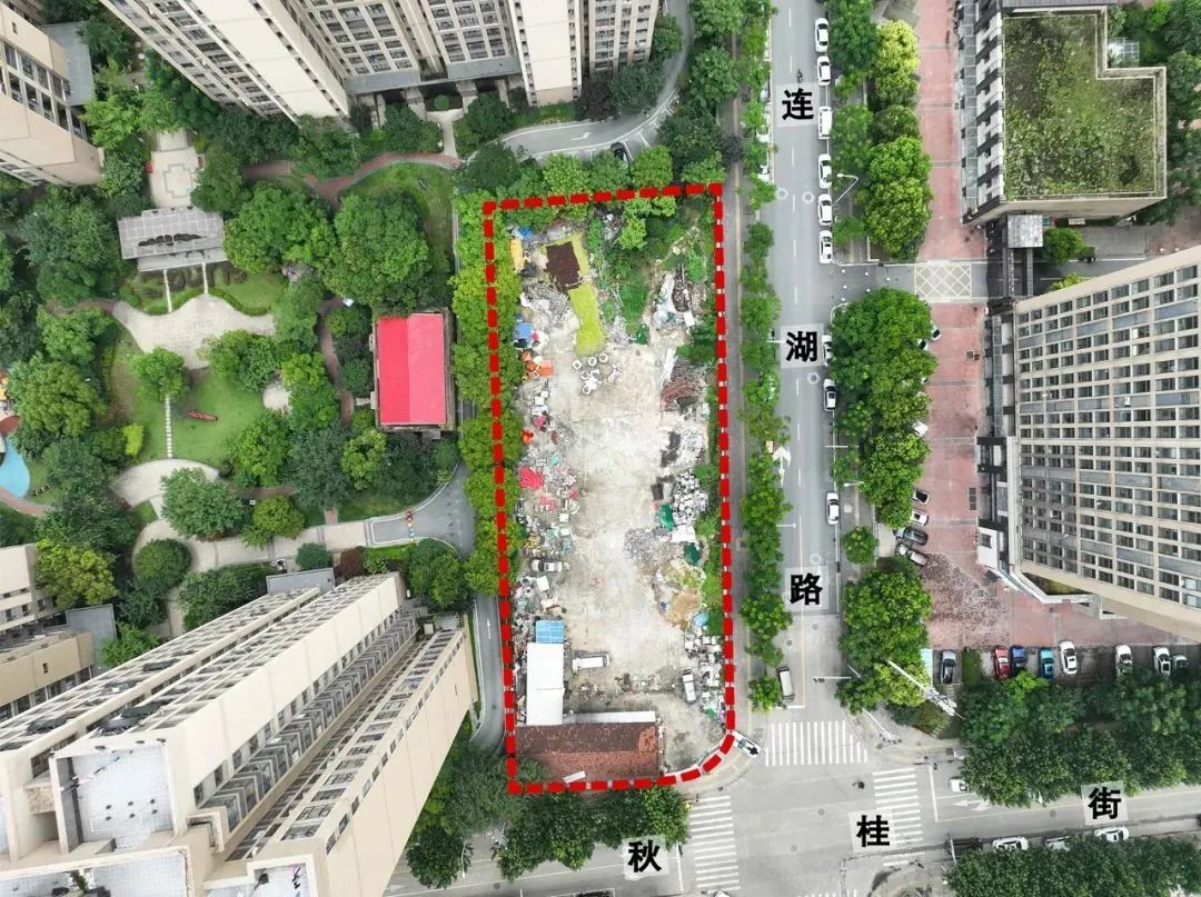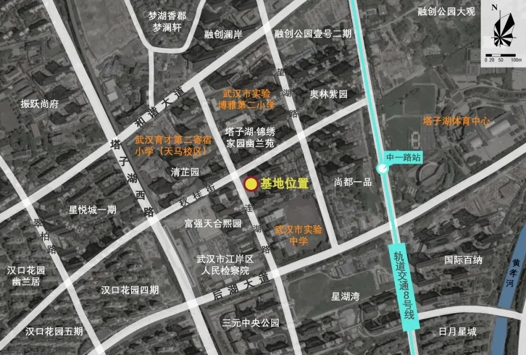 项目地块位于江岸区秋桂街与连湖路交汇处东南侧,东邻融创公园壹号小区一期,占地面积约2490平方米。周边为居住区,配套有中小学和幼儿园,距离塔子湖体育中心约七百米,轨道交通8号线中一路站在地块五百米范围内。基地现状为闲置空地。