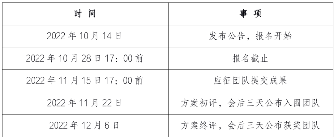 本次征集时间为2022年10月-12月,具体时间安排如下: