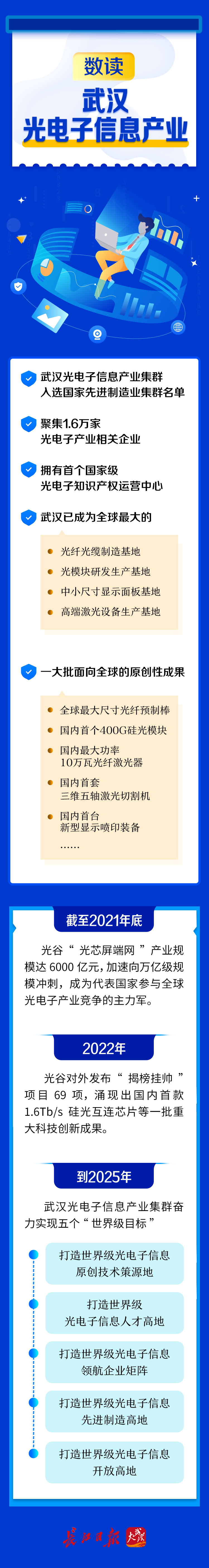 “追光”35年的武汉东湖新技术开发区始终在寻找答案。中国第一根光纤、第一个光通信国际标准,到首个400G硅光模块、首台10万瓦光纤激光器、首条柔性折叠显示屏生产线……如今,以光谷为前沿,武汉光电子信息产业规模加速向万亿级规模冲刺,成为我国参与全球光电子产业竞争的主力军。