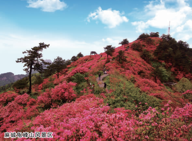 主要景点:黄冈麻城龟峰山风景区(杜鹃花)—黄冈革命烈士陵园—黄冈东坡赤壁—黄冈遗爱湖—黄冈罗田天堂寨—黄冈薄刀锋—黄冈三里畈温泉—黄冈英山四季花海—黄冈红军长征纪念馆—黄冈花乐汤温泉—黄冈英山天马寨(七彩杜鹃花)—黄冈黄梅问梅村—黄冈蕲春李时珍百草园—武汉革命博物馆—武汉八七会址—荆州洪湖国家级自然保护区—荆州湘鄂西革命根据地旧址瞿家湾—荆州同辉生态园