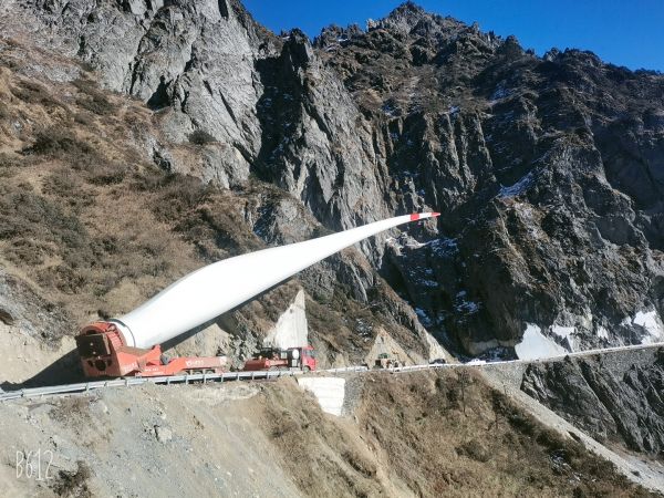 罗涛:无人机拍摄的视频和实际运输上差别很大,实际运输比视频里看到的难得多。风力发电场通常建设在高山上,运输风机叶片的挂车行驶到山顶要经过崎岖的山路或村庄。同时还要克服极端严寒、高原缺氧、大风暴雪、大雾等恶劣环境的影响。最难的是高峰风电场有一段海拔3000多米悬崖路段的运输。