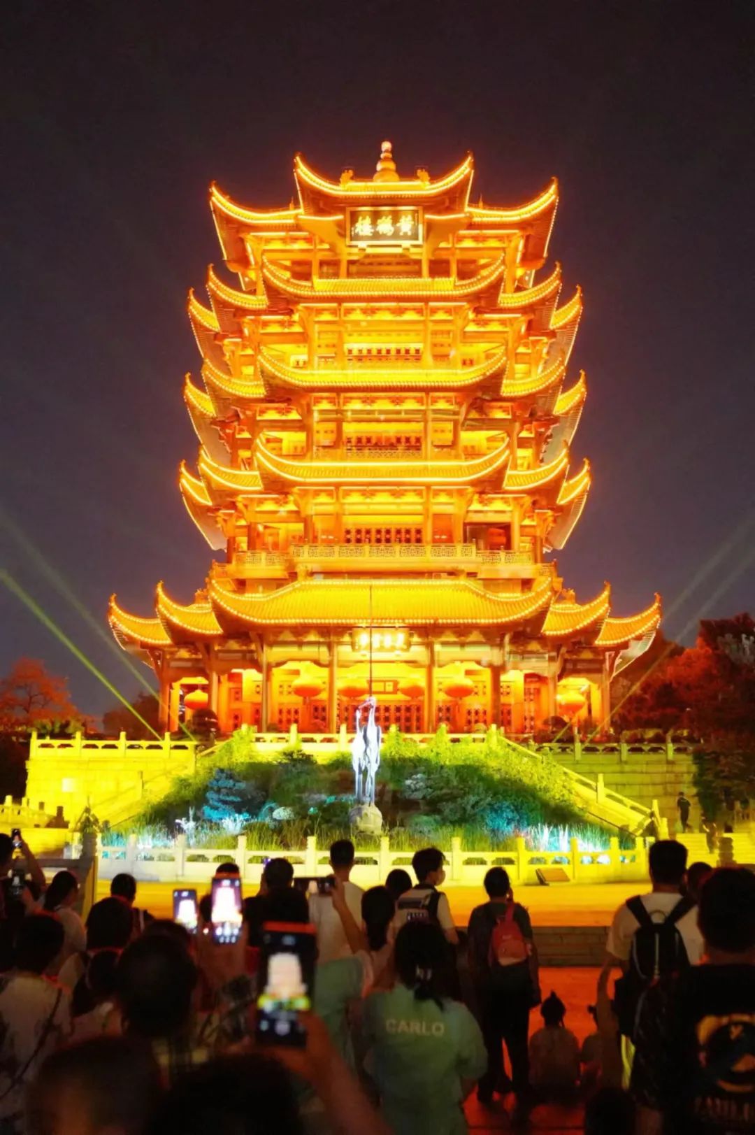 经过黄鹤楼旁的天桥,一群大学生叫住了我:“请问可以帮我们拍一张合照吗?”他们叽叽喳喳兴奋不已,我怕拍不好,想婉拒。可能他们看穿了我的顾虑,鼓励我:“拍不好也无所谓,我们就是想拍照留念。”说完我不好再拒绝,便拿起手机,“茄子……”在按下快门的一瞬间,镜头中的黄鹤楼震撼到我了——哇,好美啊,跟白天是不一样的韵味!千年名楼在光与影的交织中迷人得不像话。拍完照片后,他们塞给我一块巧克力。嘿嘿,有种毫无防备的甜。