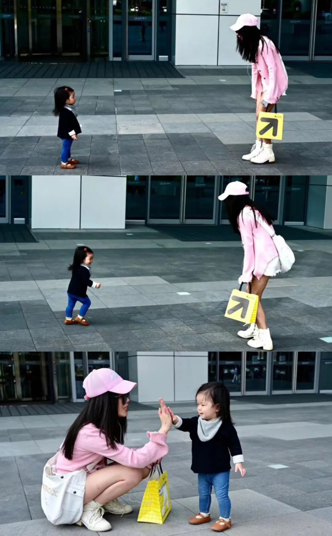 宝宝看见迎面走来的小姐姐,眼睛都亮了。小姐姐也很喜欢宝宝,两人就开心地击了个掌。摄于武汉壹方。