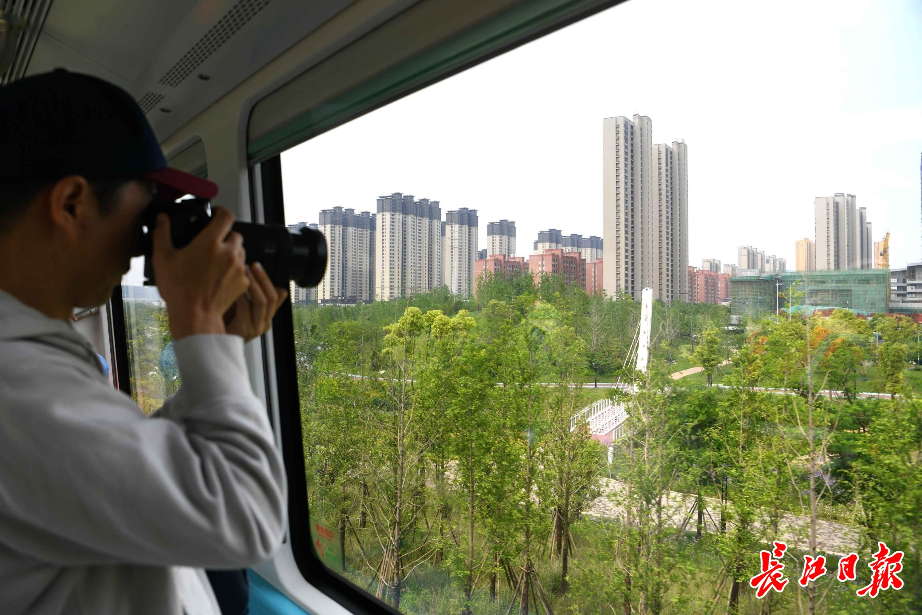 5月11日,长江日报记者第一时间尝鲜试乘光谷空轨,体验“科幻照进现实”。