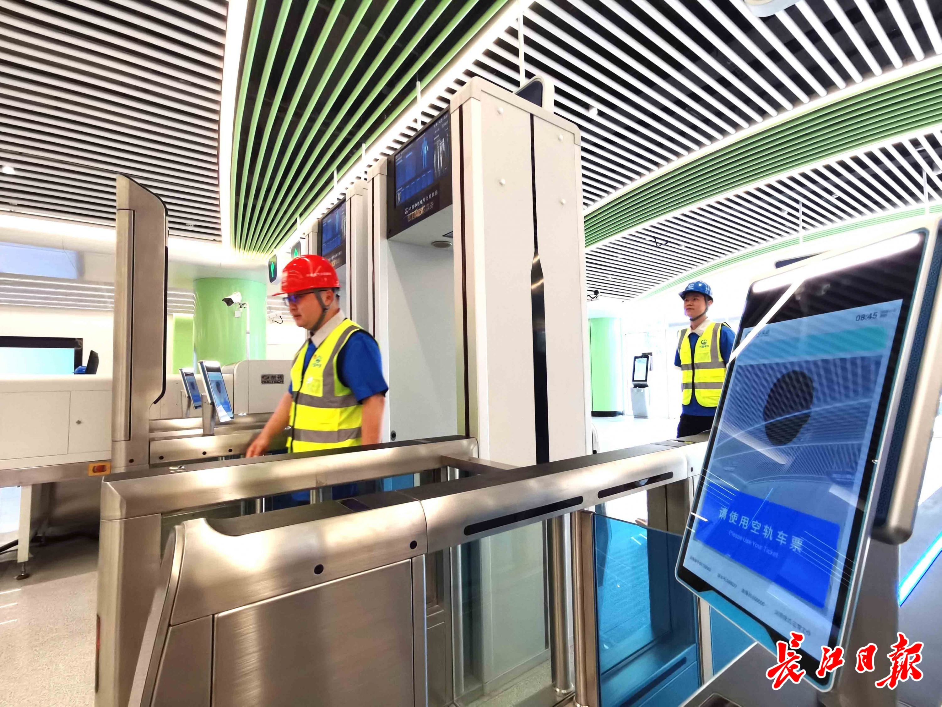 投资建设方光谷交通公司设备系统总监王安军介绍,该安检票检一体机在空轨全线全站应用,在国内属于首例。
