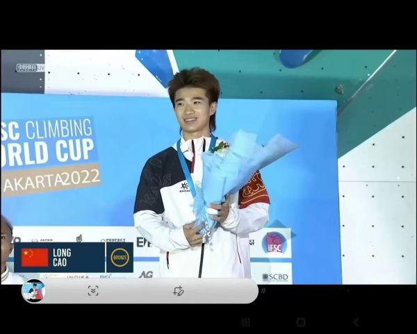 曹龙今年23岁,8岁开始练习攀岩,18岁开始练习速度攀岩项目,在崖壁上已经攀爬了15年。他2019年进入攀岩国家队,同年进入中国地质大学学习。目前在国家集训队备战奥运。