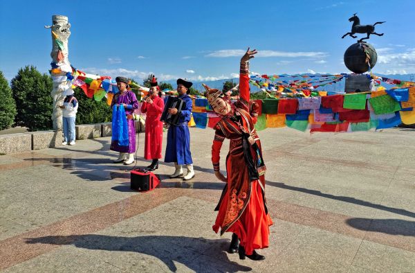 看着绣有“民族团结一家人”“中华民族同心共筑中国梦”字样的精美工艺品毯子,武汉音乐人程杰按捺不住激动的心情。“我们一起唱一首歌好吗?”程杰问道。“好的。”大家异口同声地说道。随着节拍,敖包里再次响起一首首熟悉的乐曲。