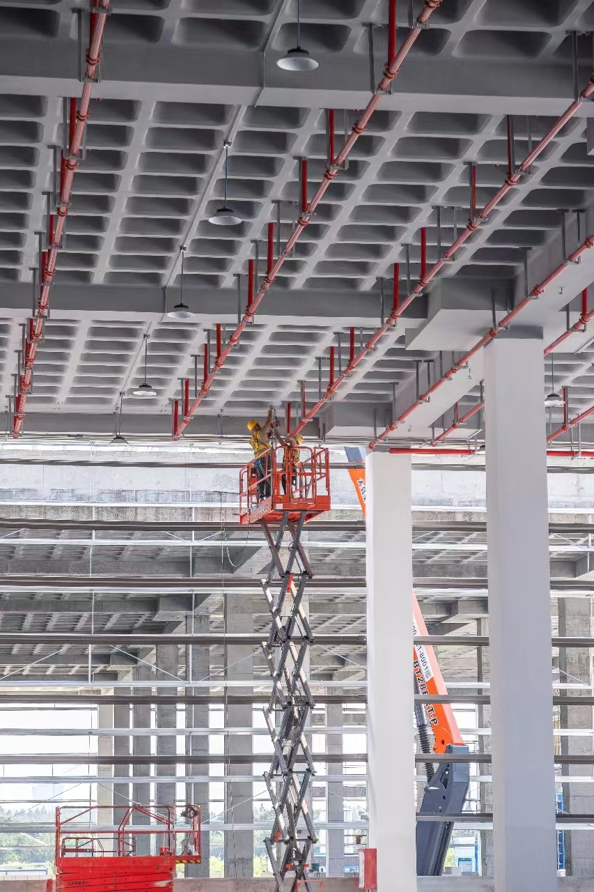 谭耀坤让记者抬头观察像“蜂窝煤”一样的装配式构件密肋梁楼板,补充说:“密肋楼盖是仓库建设过程中的一大亮点,刚度大、变形小、抗震性能好,可在同等条件下增加仓库顶部的有效使用空间。这些新技术、新工艺对我们招商运营有很大帮助,目前已有多家物流企业意向‘定制’仓库。”