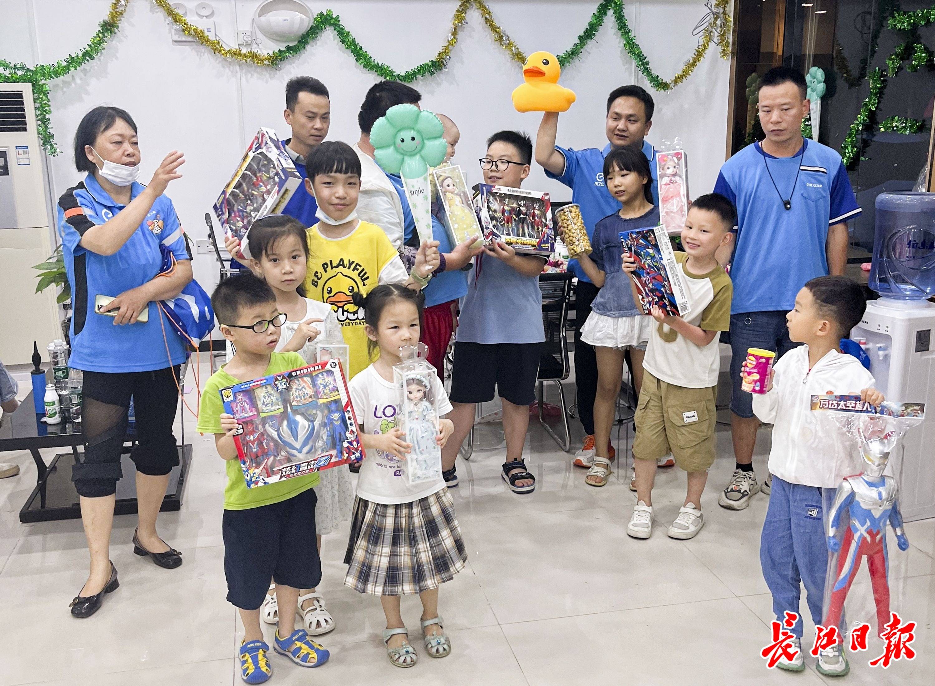 张宝剑关注身边外卖骑士的同时,也关注着他们的孩子。为了让外卖骑士们与孩子有更多相聚的欢乐时光,今年“六一”,张宝剑在蓝骑士驿站组织了一场儿童节庆祝活动。他自费购买了许多玩具和零食,让外卖骑士们将孩子带到驿站来一起联欢。“今年‘六一’‘八一’,我都在驿站组织了文艺汇演和联欢活动,来参加活动的骑士和孩子们都特别开心。希望大家都能在这份工作中、这个城市里得到归属感。”张宝剑说。