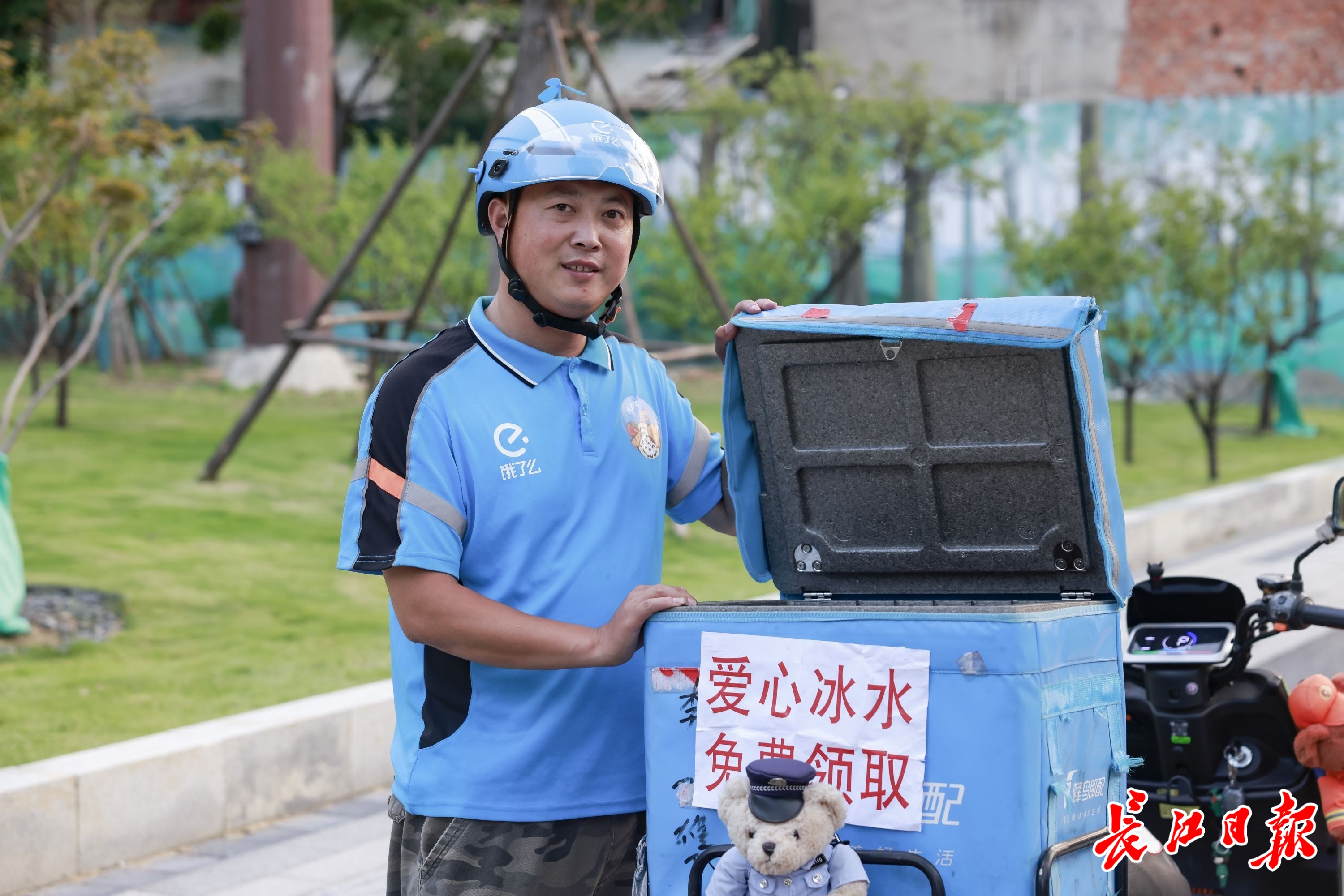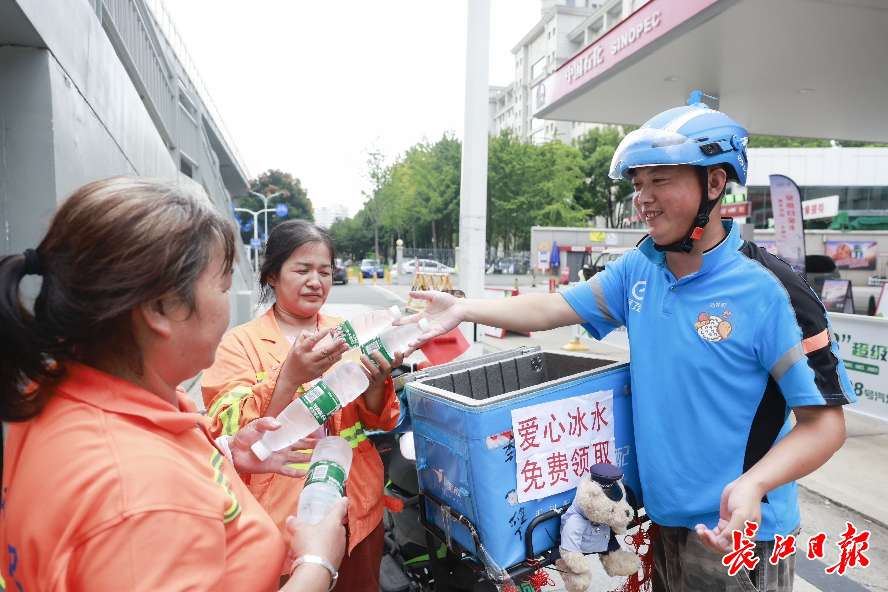 张宝剑在街头免费发放爱心冰水。长江日报记者胡冬冬 摄