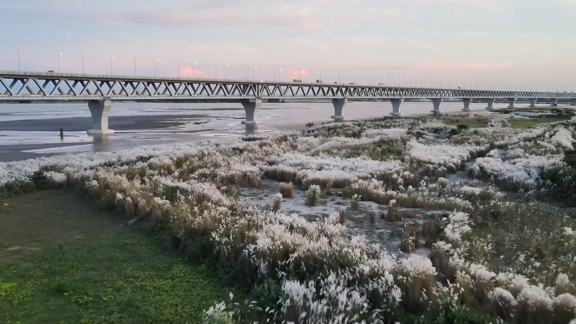芦花掩映帕德玛大桥。(中铁大桥局提供)