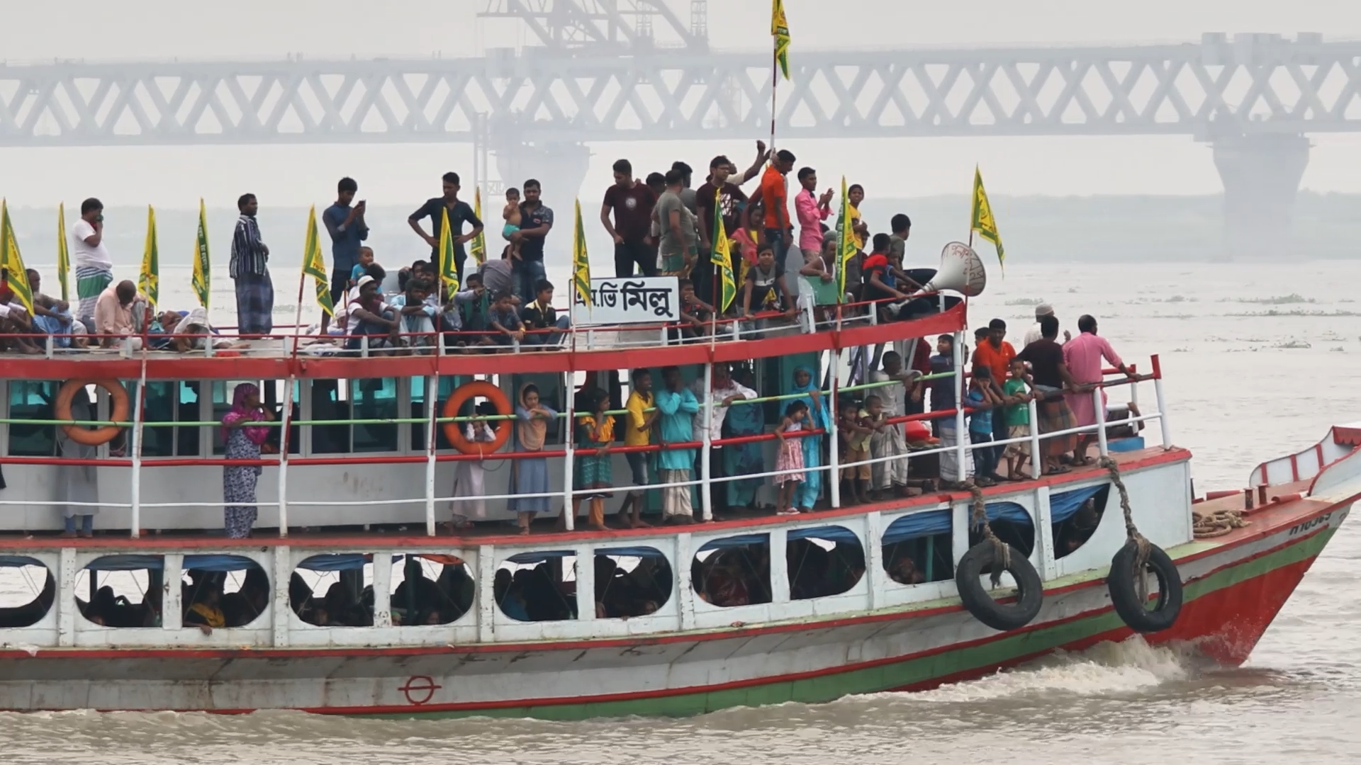 渡河,对孟加拉国人来说是一种生死般的挑战。特别是每年长达半年的雨季,帕德玛河水流湍急,夹杂着大风天气,渡船极不安全,每年都有沉船事故发生。
