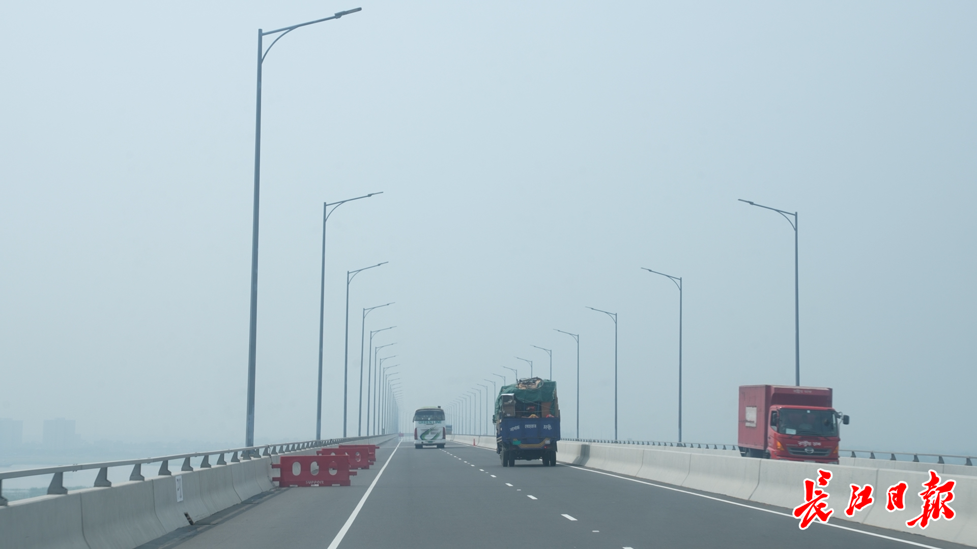 帕德玛大桥桥面行车。长江日报特派记者 胡胜 摄