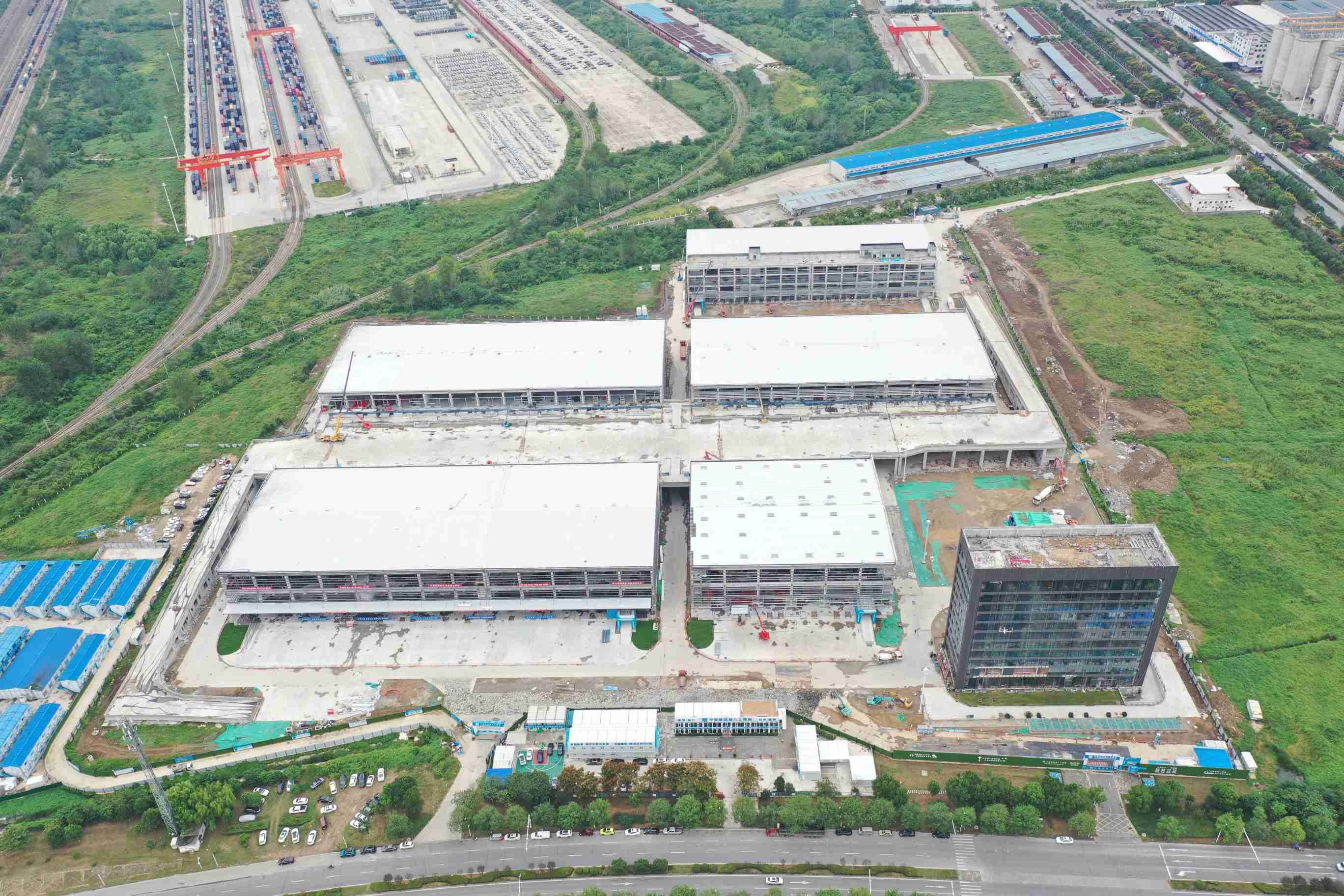 王润生说,汉欧国际物流园的建设,是一段“保质加速”的“新征程”,“自2022年9月开工建设以来,汉欧国际物流园项目一期建设持续加速。截至目前,物流园仓储区1、2、3、4号库,冷库及中欧班列(武汉)集结服务中心主体结构施工完成,正在进行各单体墙面围护结构、砌体、消防设施施工。物流园在保证工程质量的前提下,较计划工期提前了4个月,预计今年年底完工。”