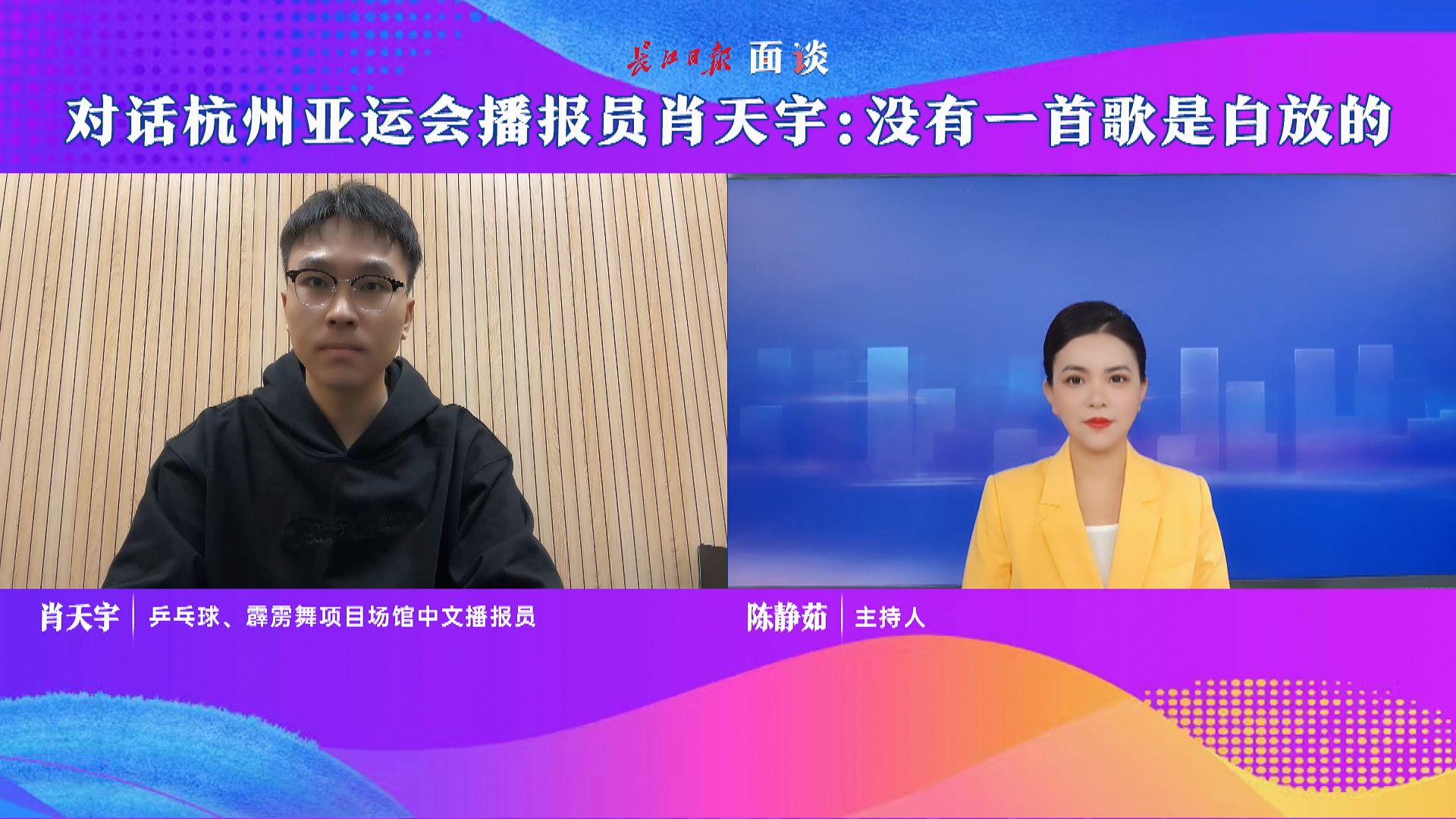 肖天宇:其实,我们场馆播放的背景音乐应该是在整个亚运会期间最早被网友去熟知的。后来,其他场馆也进行这样的一种尝试。