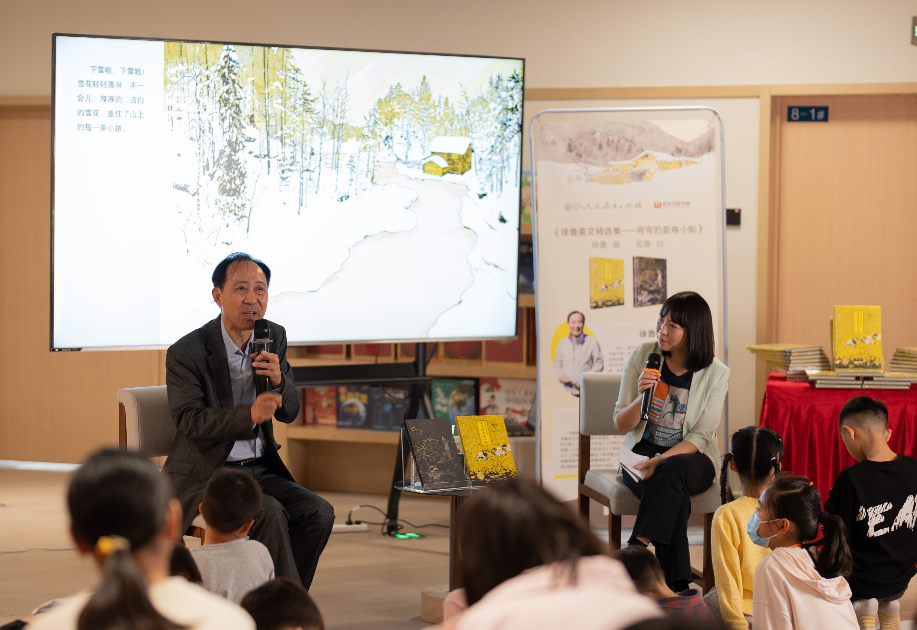 “春天是五颜六色的”“夏天的菱角甜滋滋”……当天,在武汉中心书城四楼儿童阅读空间,孩子们踊跃发言,说着自己心中关于四季的感受。《徐鲁美文精选集——弯弯的菱角小船》以四季变换为时间轴,由20篇描写美丽的大自然和我们身边的物候与风物、习俗变化特点的短小美文组成。篇幅短小但韵味悠长,在清丽纯正和准确的描写中散发着温暖、芬芳和润物无声的魅力。书中描述的夏天的打谷场、温暖的小橘灯、雪地上的斑鸠等都让小朋友们好奇不已。徐鲁说:“大自然是一本最美的书。”他建议家长,当春天到来,泥土变得柔软的时候,可以带小朋友到室外多认识动植物,让小脚丫感受大自然的温度。