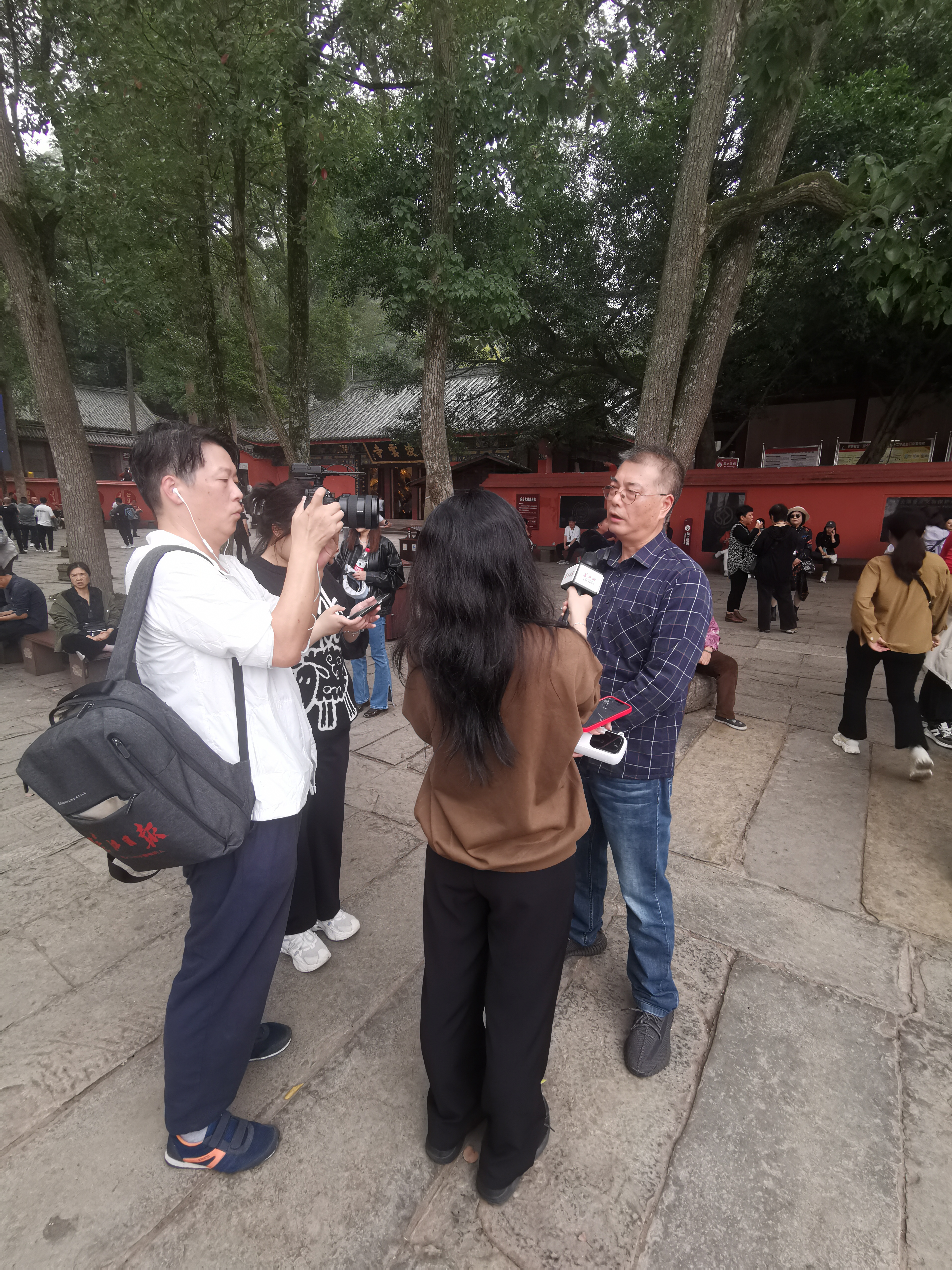 乐山大佛风景名胜景区管委会四级调研员彭学艺接受探访团采访。