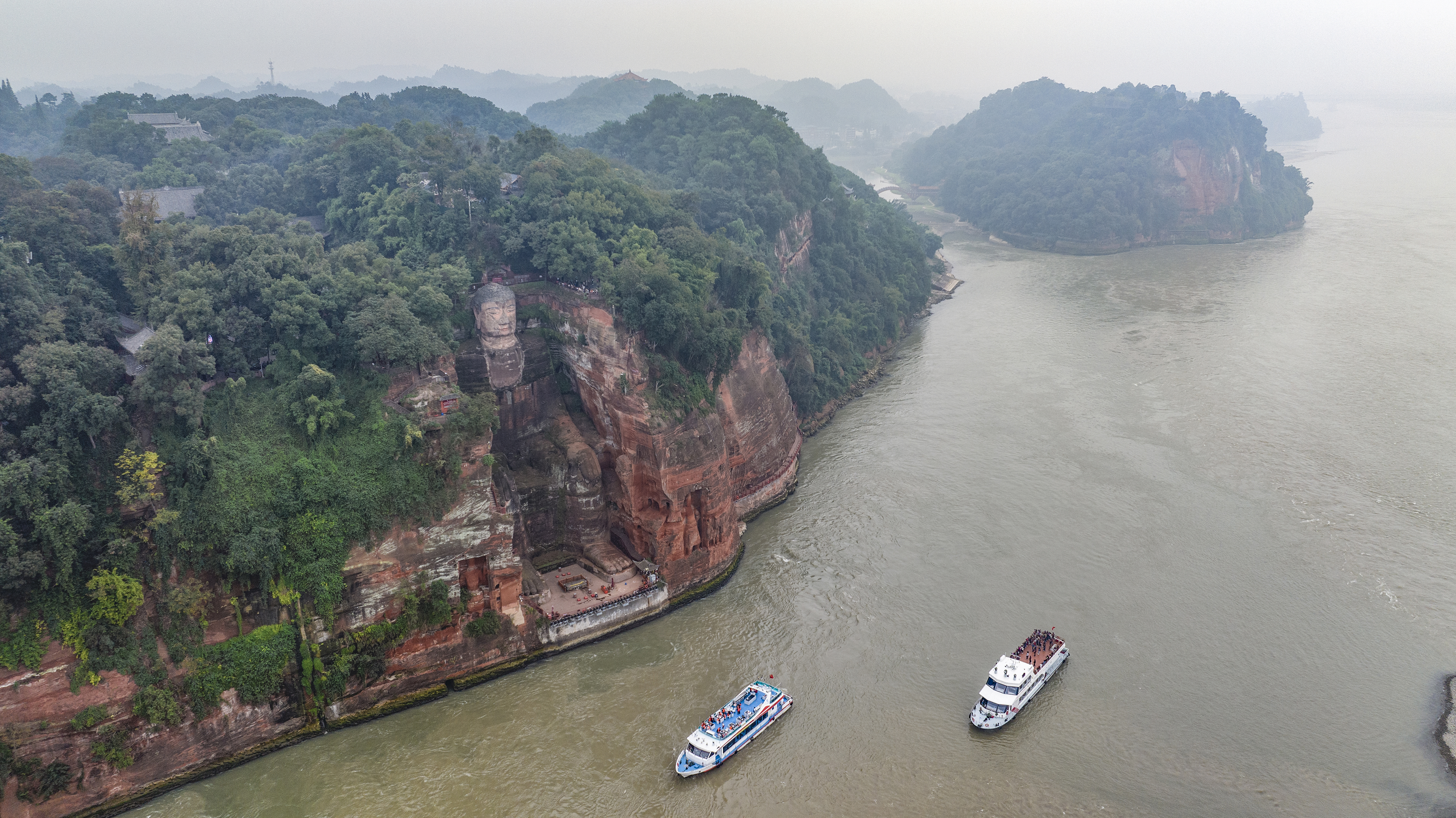 乐山大佛濒大渡河、青衣江和岷江三江汇流处。王筝 摄