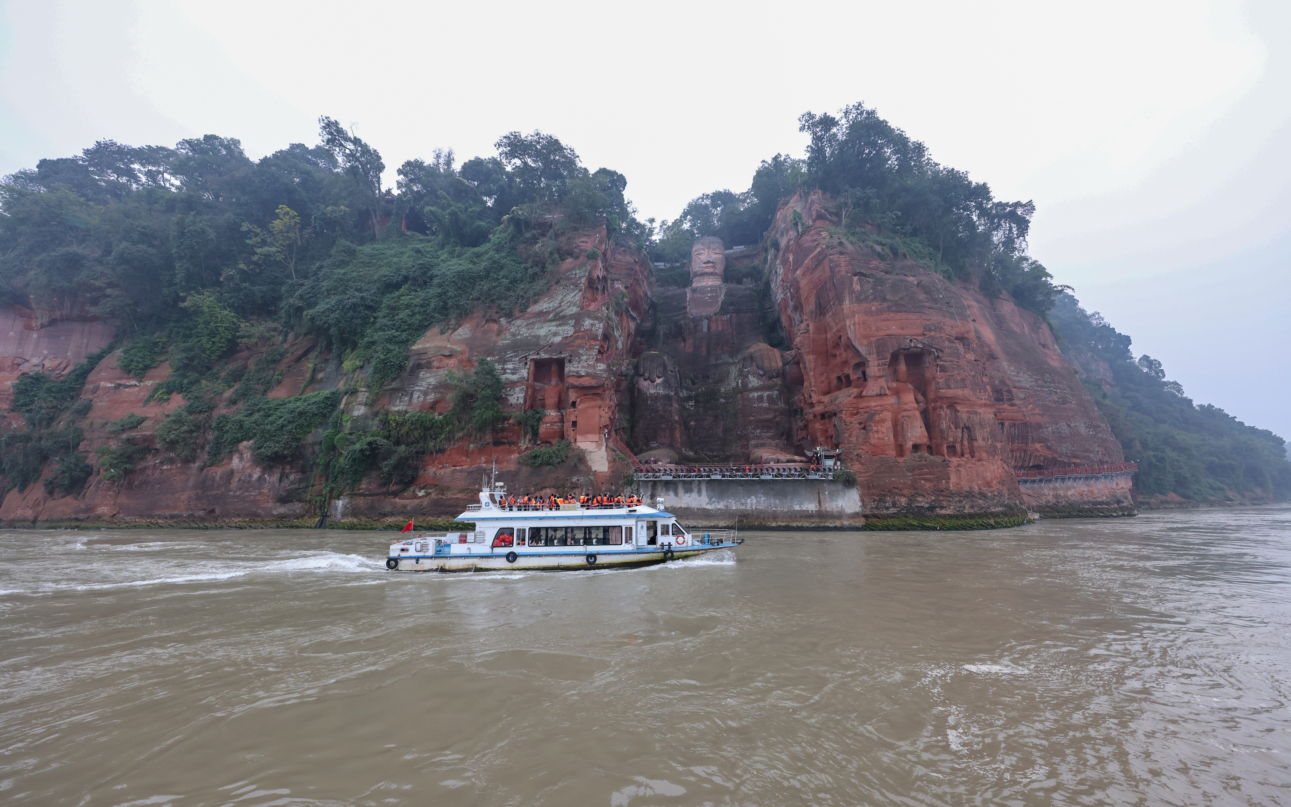 江上看乐山大佛。冯建新 摄