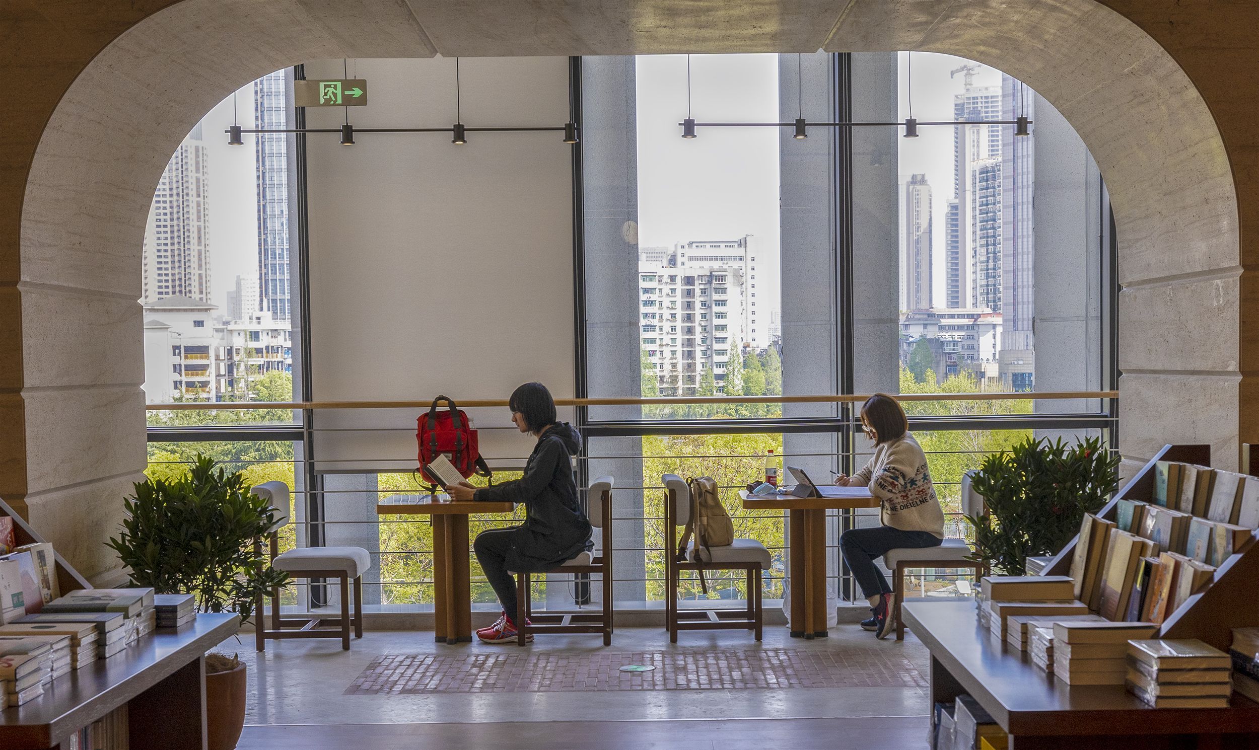 读者在菱角湖畔的武汉中心书城品味书香。武汉中心书城供图