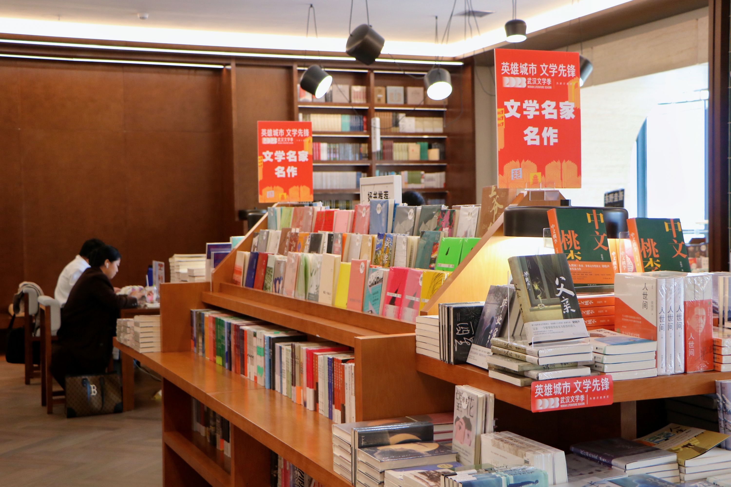 李雯所在的文学区是武汉中心书城最受欢迎的区域之一,包括中外小说、报告文学、散文、诗歌等近万册书籍。如今,这里也是2023武汉文学季活动的现场之一,现场设立专台向读者集中展示武汉文学季嘉宾的各类作品,通过精心挑选的高质量出版物,赓续武汉文脉,让一书一册中流淌着城市的文化底蕴。