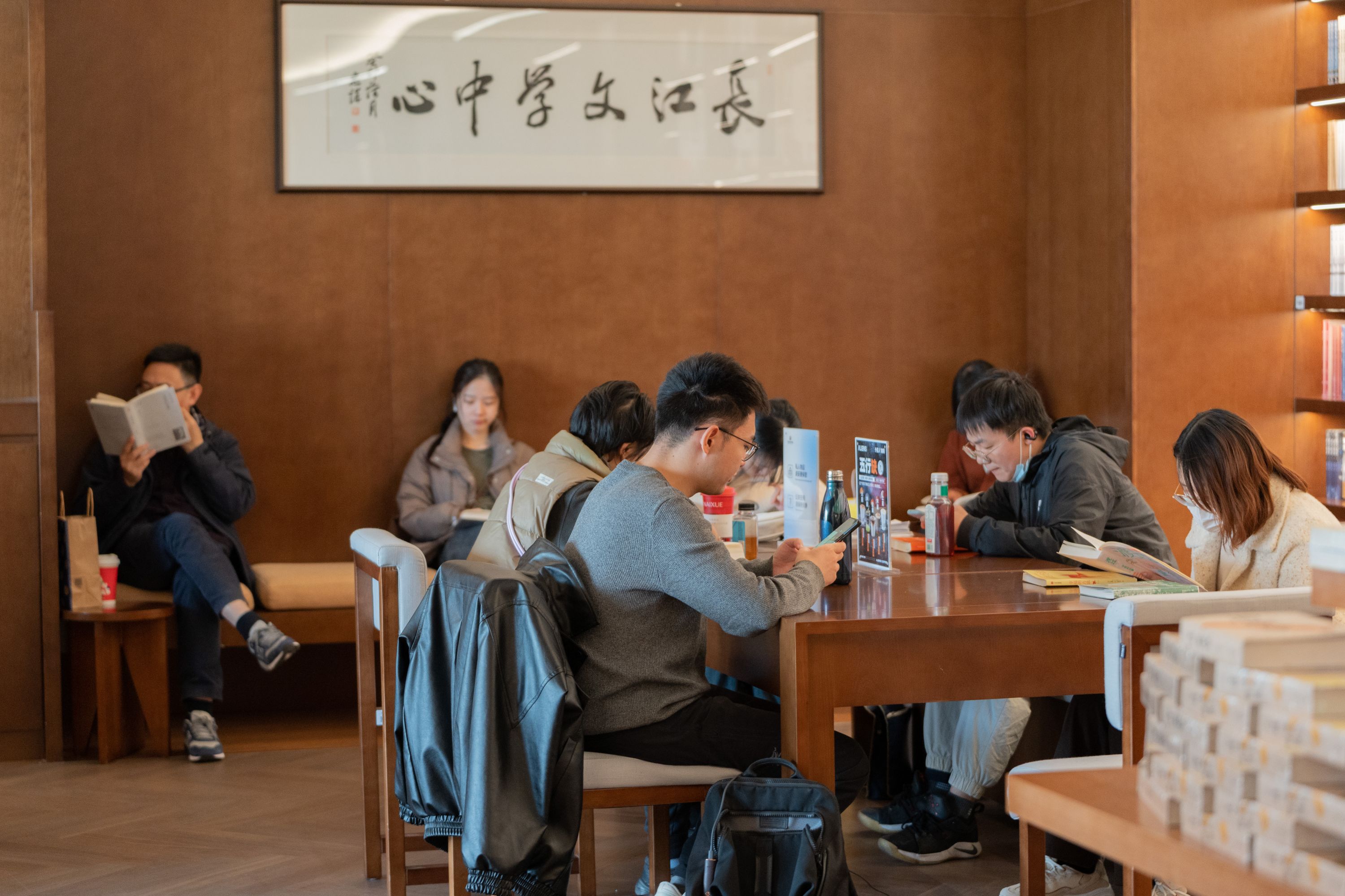 入夜,武汉中心书城8楼的江汉书院依然为读者点亮永不熄灭的阅读灯火。这家24小时书店已成为“零点青年”深夜十分享受“伴着书香的静谧”的绝佳场所。书院具有古籍典藏、城市书房、活动路演等多个功能,中华传统典籍和武汉城市文化相关书籍是其中主角。