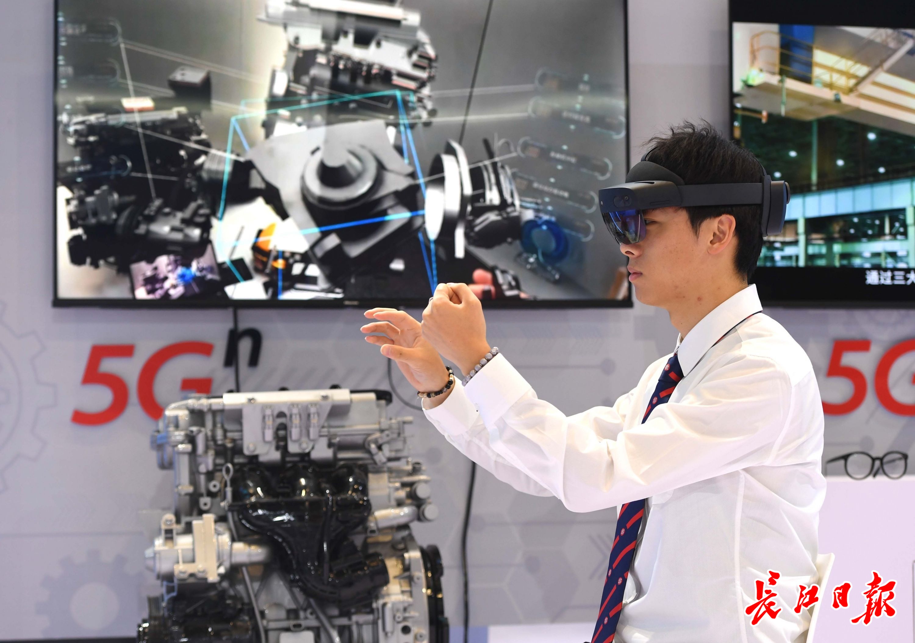 中国联通展示的5G+XR发动机远程检修。长江日报记者高勇 摄