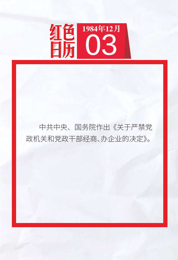 1984年的今天,中共中央、国务院作出《关于严禁党政机关和党政干部经商、办企业的决定》|红色日历