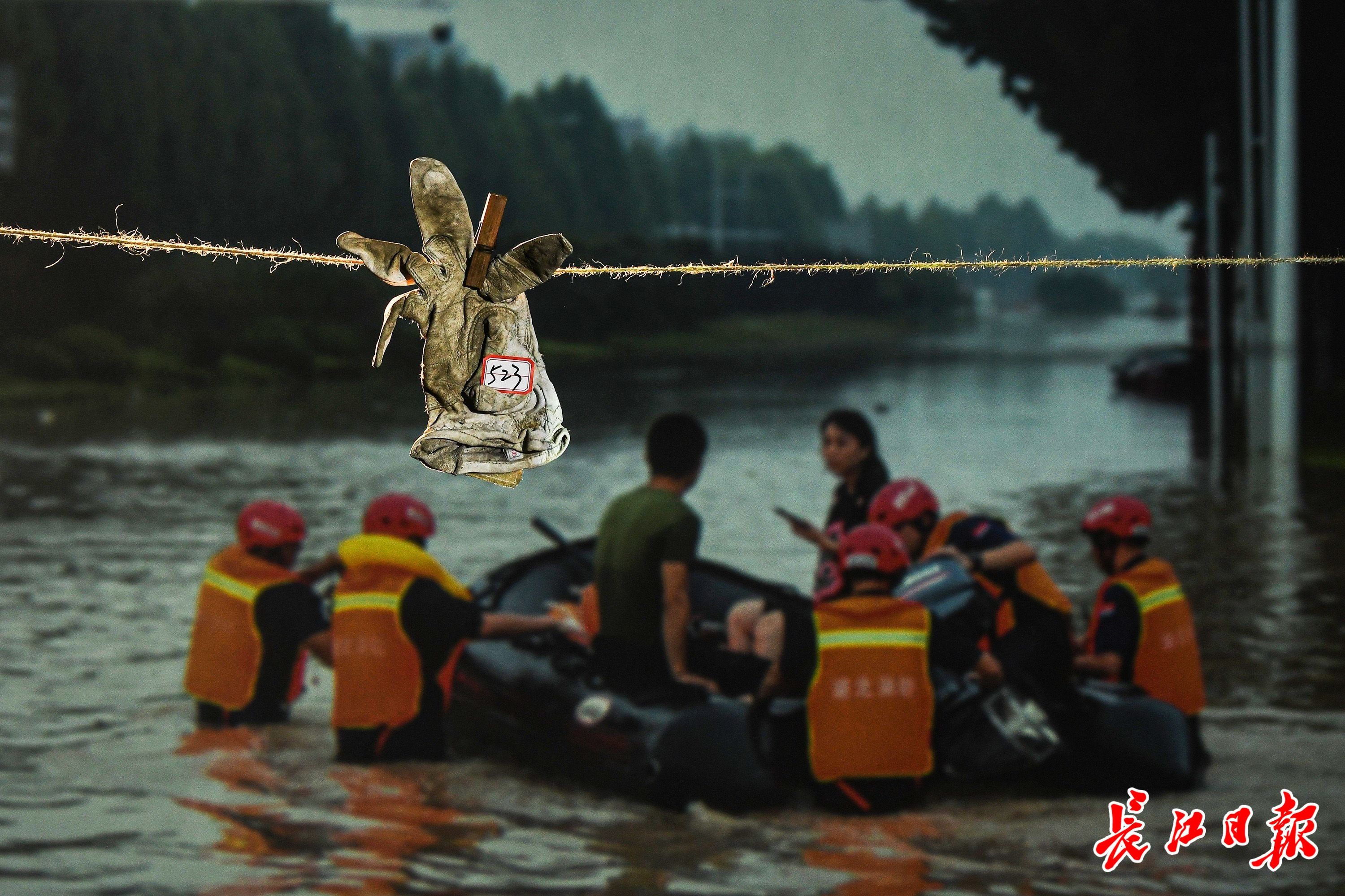 有2021年郑州特大暴雨救援中,拉起受困群众的手套……